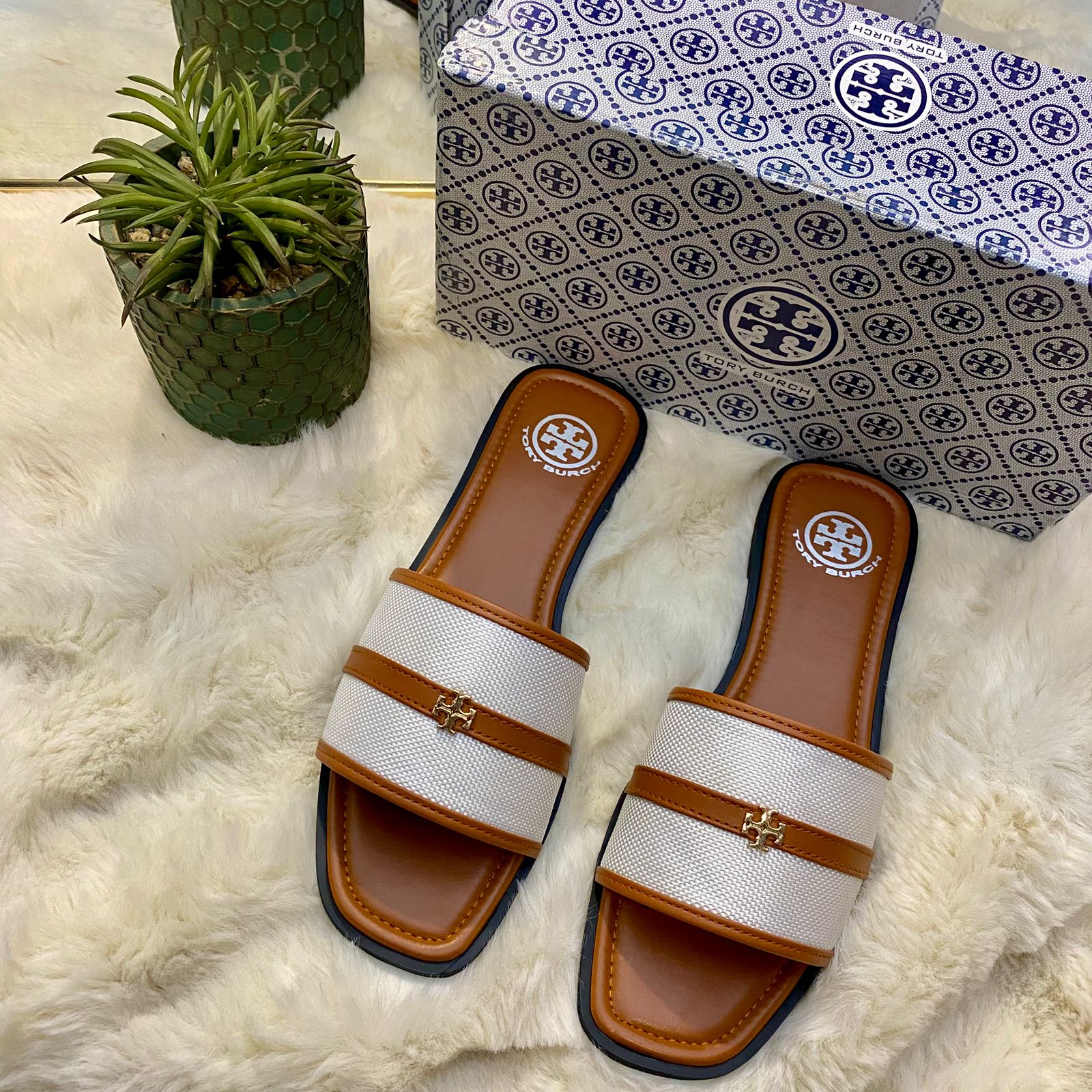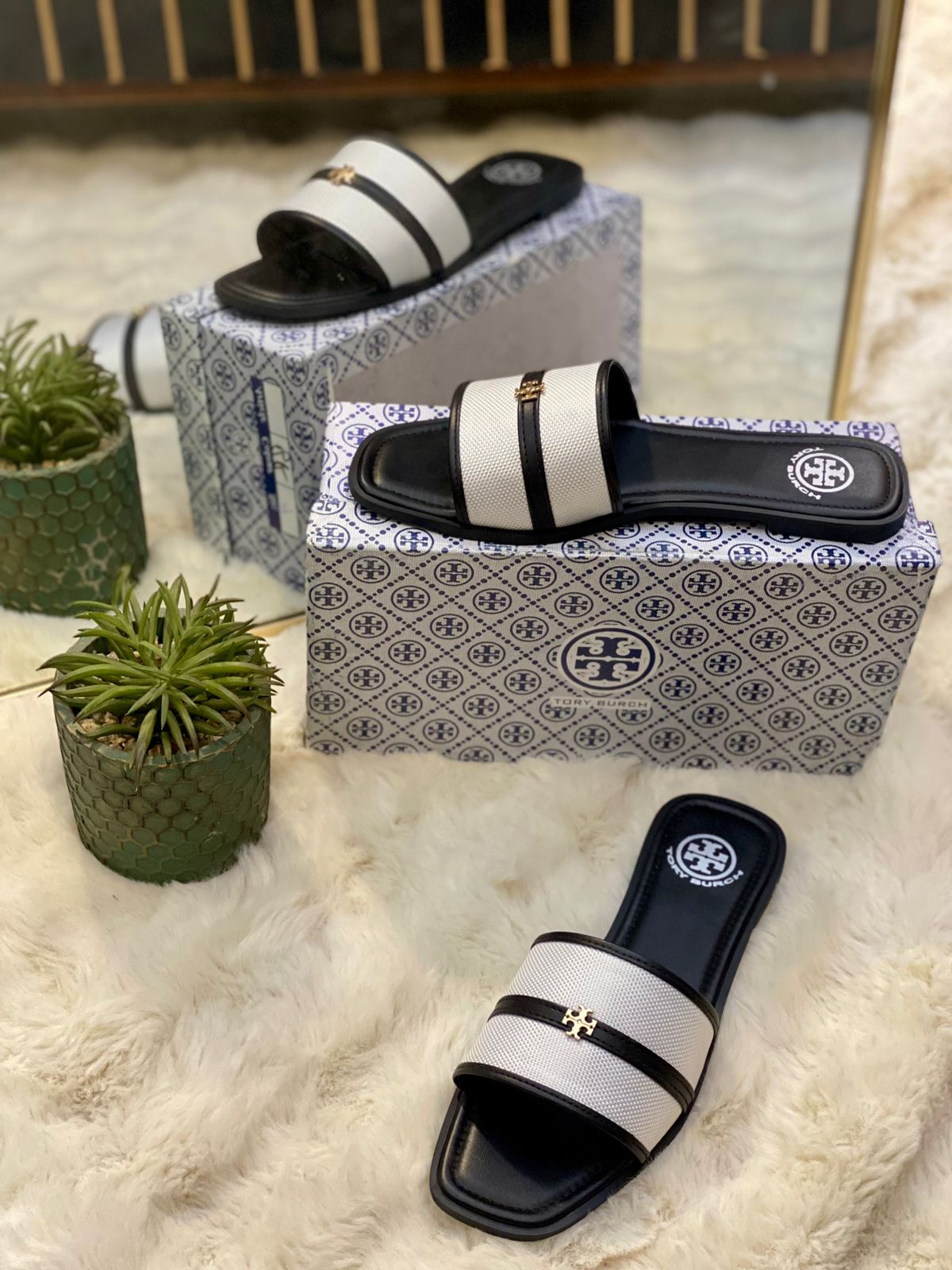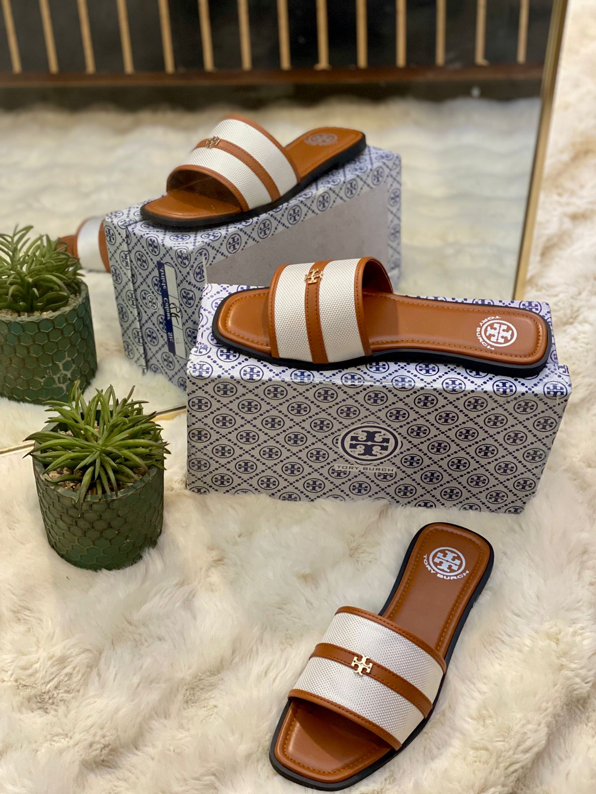 Step into effortless elegance with the TT Logo Plaque Flat Slides by StyloSteps — a timeless blend of sophistication and comfort.