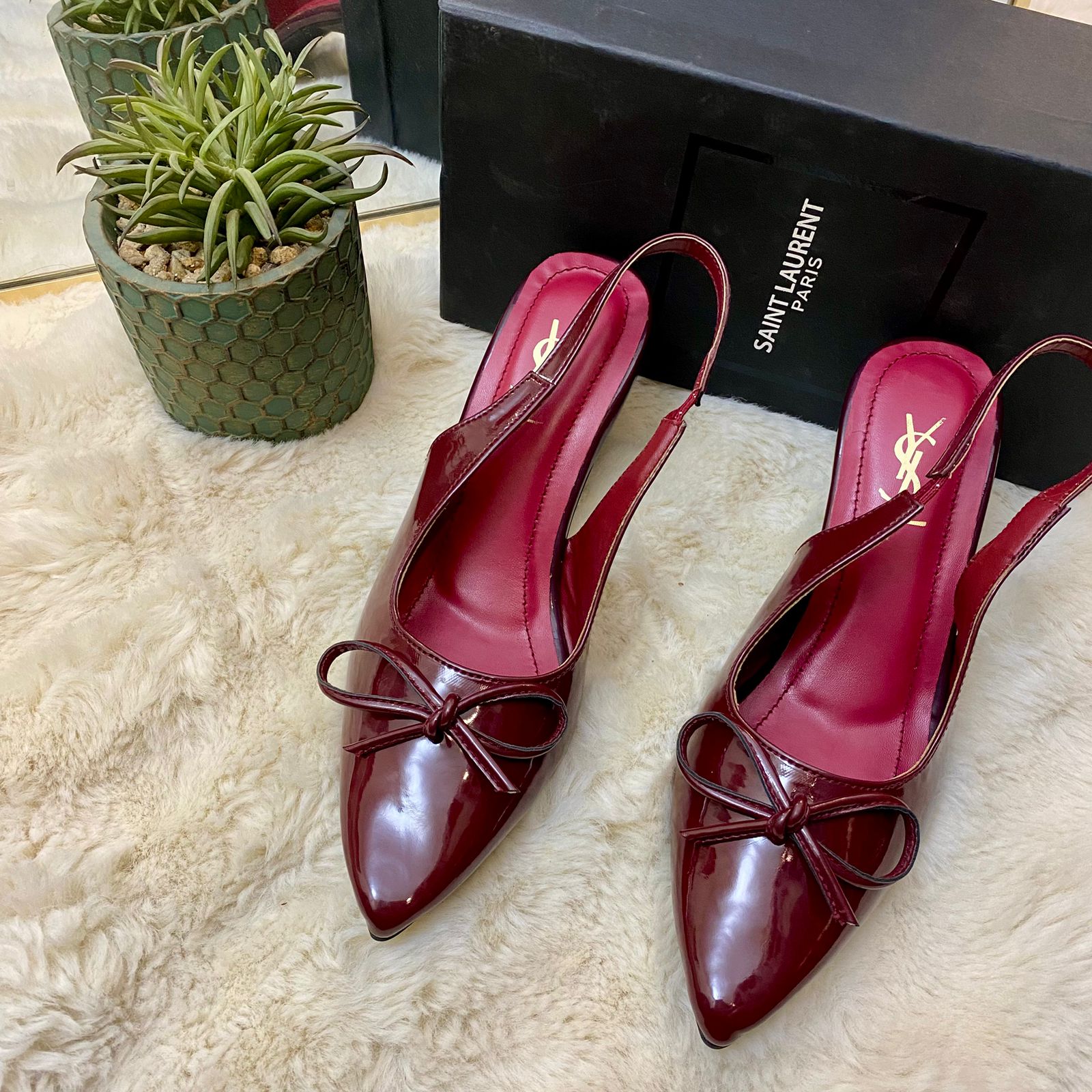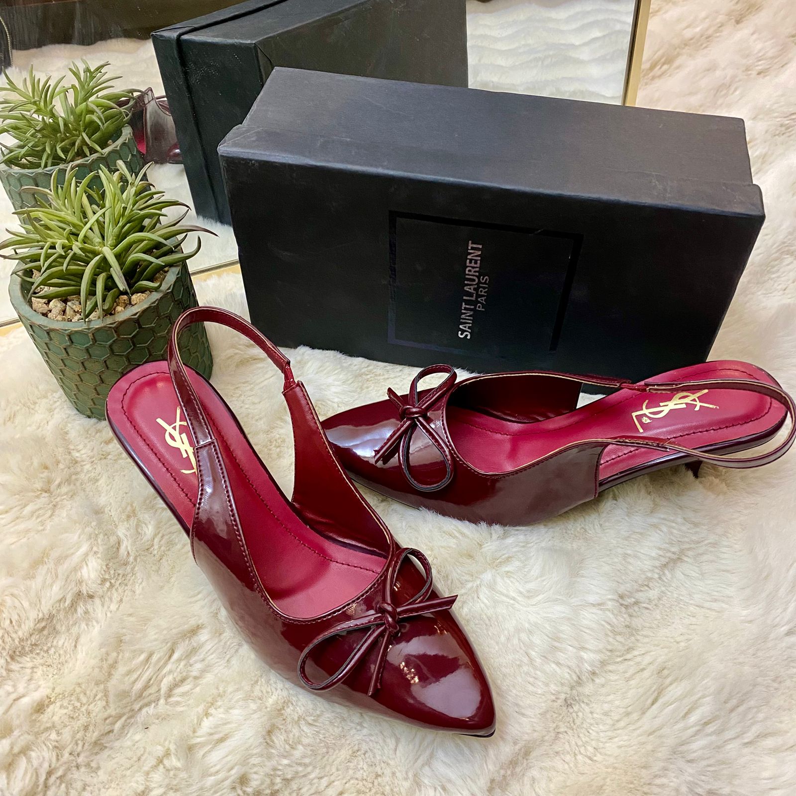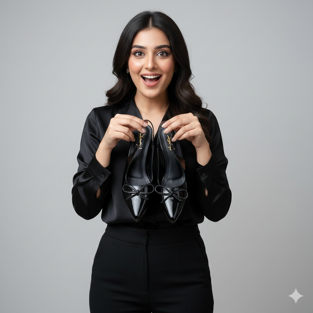The Bow Sensation Heels by Stylosteps merge classic elegance with contemporary design. Featuring a pointed-toe silhouette and a fixed bow accent, these slingbacks transition seamlessly from day to night. The 3-inch sculpted stiletto heel combines height with stability, while the elasticated slingback and cushioned insole ensure all-day comfort. Available in Jet Black and deep Cherry Red, both styles are finished with gold-toned monogram detailing.