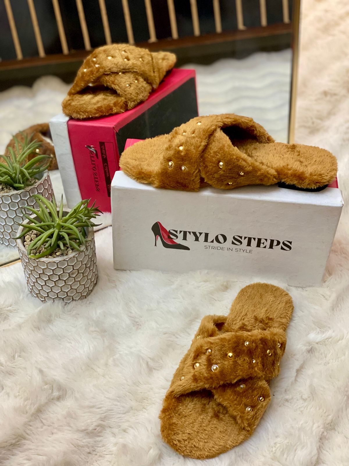 - Slogan: The accompanying shoe box features the brand's slogan: "STRIDE IN STYLE", emphasizing the fashion-forward nature of their footwear.