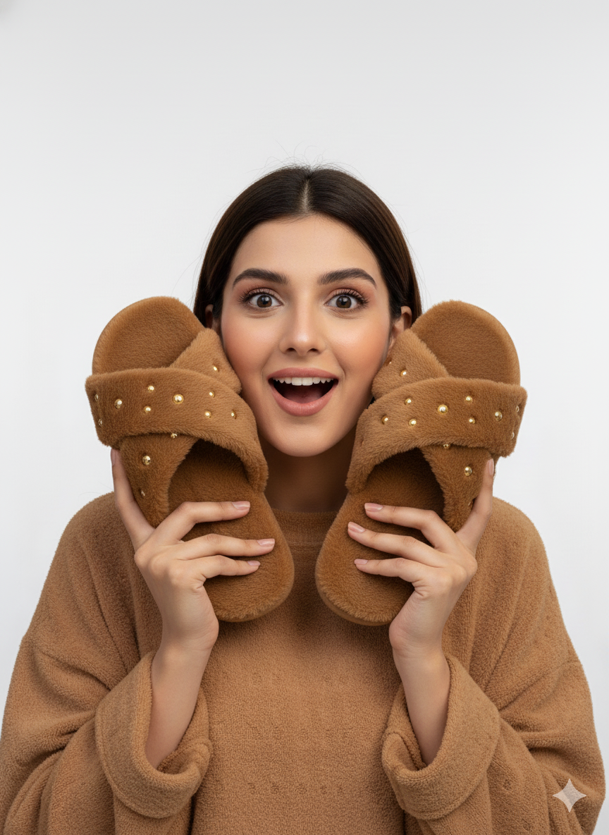- Fluffy Material: The slides are constructed with a soft, plush, and cozy faux fur material that covers the upper strap and the footbed. This provides exceptional warmth and comfort.